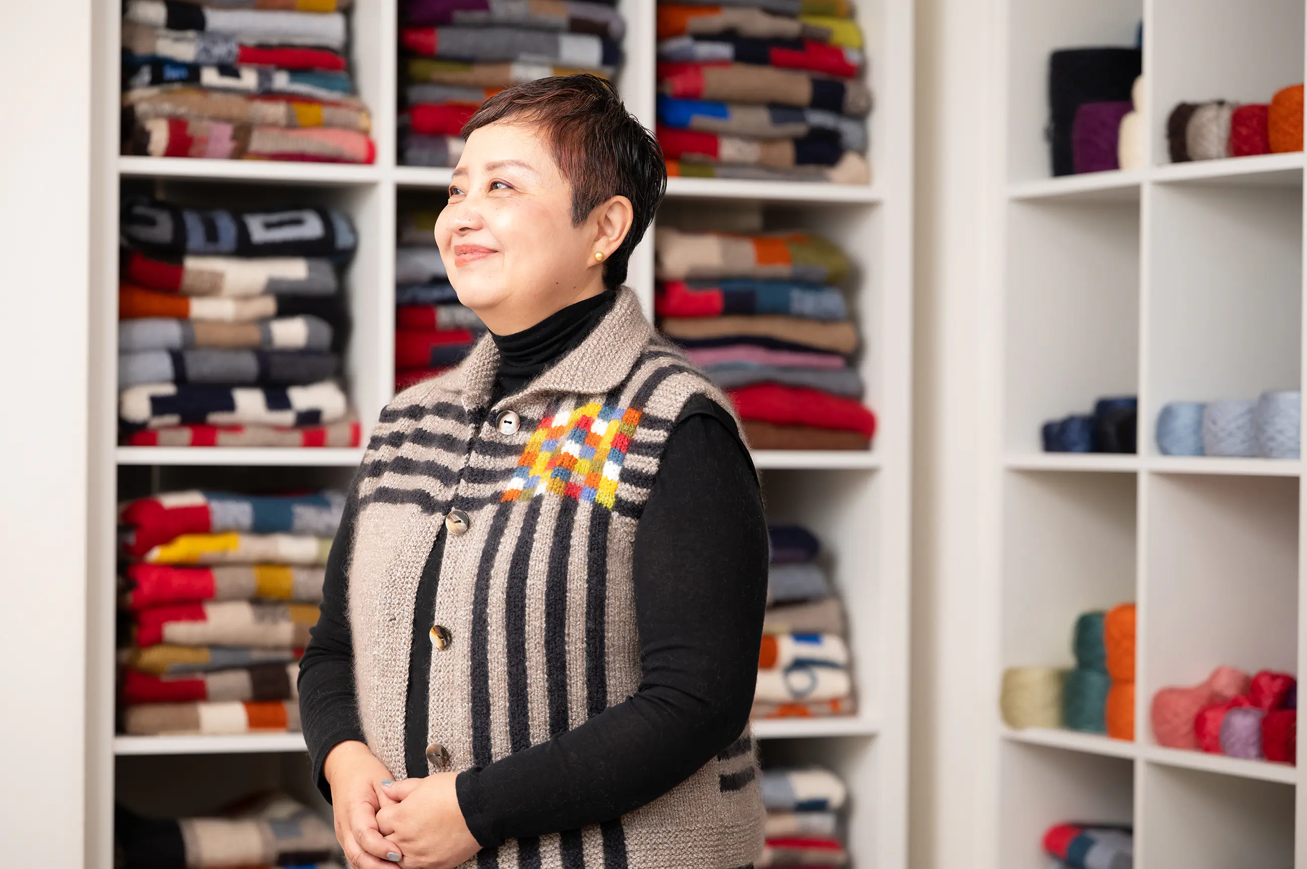 私のデザインとニッターたちの技術が響き合うことで、シルクは日常に息づく新しい姿となり、